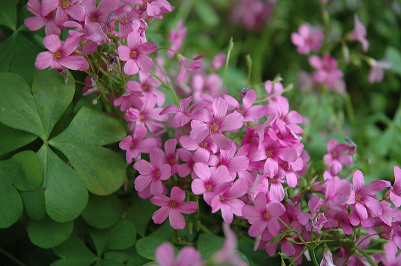 Hardiness Zone: 5 Description: Rich clover-like bright green foliage, covered with dainty pink trumpets in spring, lighting up the shaded areas of the garden; heavy spring bloom is followed by sporadic re-bloom all summer; morning sun to bright shade is fine Ornamental Features Pink Wood Sorrel's attractive fan-shaped leaves remain light green in color throughout the season on a plant with a mounded habit of growth. Landscape Attributes Pink Wood Sorrel is a dense herbaceous perennial with a mounded form. Its medium texture blends into the garden, but can always be balanced by a couple of finer or coarser plants for an effective composition. This is a relatively low maintenance plant, and may require the occasional pruning to look its best. It has no significant negative characteristics. Pink Wood Sorrel is recommended for the following landscape applications; Planting & Growing Pink Wood Sorrel will grow to be only 6 inches tall at maturity extending to 8 inches tall with the flowers, with a spread of 12 inches. When grown in masses or used as a bedding plant, individual plants should be spaced approximately 10 inches apart. Its foliage tends to remain low and dense right to the ground. It grows at a medium rate, and under ideal conditions can be expected to live for approximately 10 years. As an herbaceous perennial, this plant will usually die back to the crown each winter, and will regrow from the base each spring. Be careful not to disturb the crown in late winter when it may not be readily seen! This plant does best in full sun to partial shade. It does best in average to evenly moist conditions, but will not tolerate standing water. It is not particular as to soil type or pH. It is somewhat tolerant of urban pollution. This is a selected variety of a species not originally from North America. It can be propagated by division; however, as a cultivated variety, be aware that it may be subject to certain restrictions or prohibitions on propagation. Pink Wood Sorrel is a fine choice for the garden, but it is also a good selection for planting in outdoor pots and containers. It is often used as a 'filler' in the 'spiller-thriller-filler' container combination, providing a canvas of foliage against which the thriller plants stand out. Note that when growing plants in outdoor containers and baskets, they may require more frequent waterings than they would in the yard or garden.