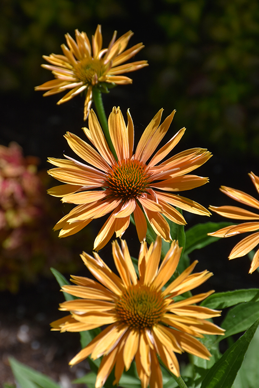 Hardiness Zone: 4 Description: Unusual large flowers with salmon-gold petals and red-orange center cones; fragrant flowers; great for flower arrangements, attracts pollinators and feeds the birds in winter; use in naturalized areas with other native plants Ornamental Features Big Kahuna Coneflower has masses of beautiful lightly-scented salmon daisy flowers with gold overtones and coppery-bronze eyes at the ends of the stems from mid summer to mid fall, which are most effective when planted in groupings. The flowers are excellent for cutting. Its pointy leaves remain green in color throughout the season. Landscape Attributes Big Kahuna Coneflower is an herbaceous perennial with an upright spreading habit of growth. Its medium texture blends into the garden, but can always be balanced by a couple of finer or coarser plants for an effective composition. This is a relatively low maintenance plant, and is best cleaned up in early spring before it resumes active growth for the season. It is a good choice for attracting butterflies to your yard, but is not particularly attractive to deer who tend to leave it alone in favor of tastier treats. It has no significant negative characteristics. Big Kahuna Coneflower is recommended for the following landscape applications; Planting & Growing Big Kahuna Coneflower will grow to be about 15 inches tall at maturity extending to 24 inches tall with the flowers, with a spread of 24 inches. Its foliage tends to remain dense right to the ground, not requiring facer plants in front. It grows at a medium rate, and under ideal conditions can be expected to live for approximately 10 years. As an herbaceous perennial, this plant will usually die back to the crown each winter, and will regrow from the base each spring. Be careful not to disturb the crown in late winter when it may not be readily seen! This plant should only be grown in full sunlight. It is very adaptable to both dry and moist locations, and should do just fine under typical garden conditions. It is considered to be drought-tolerant, and thus makes an ideal choice for a low-water garden or xeriscape application. It is not particular as to soil type or pH. It is highly tolerant of urban pollution and will even thrive in inner city environments. This particular variety is an interspecific hybrid. It can be propagated by division; however, as a cultivated variety, be aware that it may be subject to certain restrictions or prohibitions on propagation. Big Kahuna Coneflower is a fine choice for the garden, but it is also a good selection for planting in outdoor pots and containers. With its upright habit of growth, it is best suited for use as a 'thriller' in the 'spiller-thriller-filler' container combination; plant it near the center of the pot, surrounded by smaller plants and those that spill over the edges. Note that when growing plants in outdoor containers and baskets, they may require more frequent waterings than they would in the yard or garden.![]()