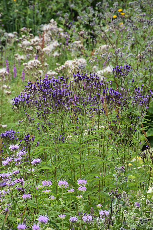 Hardiness Zone: 3 Other Names: Blue Vervain, Swamp Verbena Description: This variety is a vigorous grower producing volumes of violet-blue flowers on candelabra like spikes rising above the foliage; very impressive when massed; leaves are lance shaped and sharply toothed; thrives in average to wet conditions Ornamental Features Blue Verbena features showy spikes of violet flowers with blue overtones rising above the foliage from early summer to early fall. Its serrated pointy leaves remain forest green in color throughout the season. Landscape Attributes Blue Verbena is an herbaceous perennial with an upright spreading habit of growth. Its relatively fine texture sets it apart from other garden plants with less refined foliage. This plant will require occasional maintenance and upkeep, and should be cut back in late fall in preparation for winter. It is a good choice for attracting butterflies to your yard. Gardeners should be aware of the following characteristic(s) that may warrant special consideration; Blue Verbena is recommended for the following landscape applications; Planting & Growing Blue Verbena will grow to be about 3 feet tall at maturity extending to 4 feet tall with the flowers, with a spread of 3 feet. When grown in masses or used as a bedding plant, individual plants should be spaced approximately 28 inches apart. Its foliage tends to remain dense right to the ground, not requiring facer plants in front. It grows at a fast rate, and under ideal conditions can be expected to live for approximately 5 years. As an herbaceous perennial, this plant will usually die back to the crown each winter, and will regrow from the base each spring. Be careful not to disturb the crown in late winter when it may not be readily seen! This plant should only be grown in full sunlight. It is quite adaptable, prefering to grow in average to wet conditions, and will even tolerate some standing water. It is not particular as to soil pH, but grows best in rich soils. It is somewhat tolerant of urban pollution, and will benefit from being planted in a relatively sheltered location. Consider applying a thick mulch around the root zone in winter to protect it in exposed locations or colder microclimates. This species is native to parts of North America. It can be propagated by division. Blue Verbena is a fine choice for the garden, but it is also a good selection for planting in outdoor pots and containers. With its upright habit of growth, it is best suited for use as a 'thriller' in the 'spiller-thriller-filler' container combination; plant it near the center of the pot, surrounded by smaller plants and those that spill over the edges. It is even sizeable enough that it can be grown alone in a suitable container. Note that when growing plants in outdoor containers and baskets, they may require more frequent waterings than they would in the yard or garden.