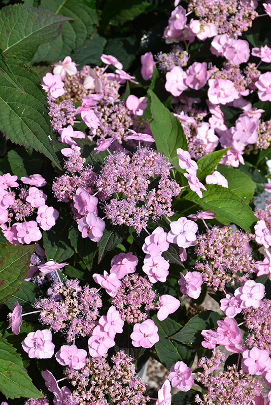 Hardiness Zone: 4 Other Names: Mountain Hydrangea Brand: Proven Winners Description: An attractive, re-blooming shrub featuring showy white to light-pink lacecap flowers with creamy centers, that turn more blue in acid soil; re-blooms on new and old wood; deep green leaves turn burgundy in fall Ornamental Features Tiny Tuff Stuff™ Hydrangea features bold pink lacecap flowers with white overtones and blue streaks at the ends of the branches from early to late summer. The flowers are excellent for cutting. It has attractive dark green deciduous foliage. The serrated pointy leaves are highly ornamental and turn an outstanding burgundy in the fall. Landscape Attributes Tiny Tuff Stuff™ Hydrangea is a multi-stemmed deciduous shrub with an upright spreading habit of growth. Its strikingly bold and coarse texture can be very effective in a balanced landscape composition. This is a relatively low maintenance shrub, and should only be pruned after flowering to avoid removing any of the current season's flowers. It has no significant negative characteristics. Tiny Tuff Stuff™ Hydrangea is recommended for the following landscape applications; Planting & Growing Tiny Tuff Stuff™ Hydrangea will grow to be about 24 inches tall at maturity, with a spread of 24 inches. It has a low canopy. It grows at a medium rate, and under ideal conditions can be expected to live for approximately 30 years. This shrub performs well in both full sun and full shade. However, you may want to keep it away from hot, dry locations that receive direct afternoon sun or which get reflected sunlight, such as against the south side of a white wall. It prefers to grow in average to moist conditions, and shouldn't be allowed to dry out. It is not particular as to soil type, but has a definite preference for acidic soils. It is somewhat tolerant of urban pollution, and will benefit from being planted in a relatively sheltered location. Consider applying a thick mulch around the root zone in winter to protect it in exposed locations or colder microclimates. This is a selected variety of a species not originally from North America. Tiny Tuff Stuff™ Hydrangea makes a fine choice for the outdoor landscape, but it is also well-suited for use in outdoor pots and containers. With its upright habit of growth, it is best suited for use as a 'thriller' in the 'spiller-thriller-filler' container combination; plant it near the center of the pot, surrounded by smaller plants and those that spill over the edges. It is even sizeable enough that it can be grown alone in a suitable container. Note that when grown in a container, it may not perform exactly as indicated on the tag - this is to be expected. Also note that when growing plants in outdoor containers and baskets, they may require more frequent waterings than they would in the yard or garden.![]()