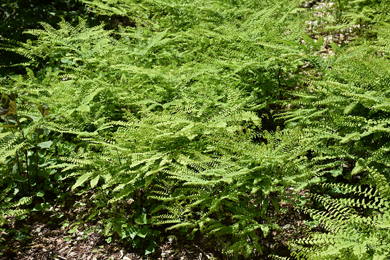 Hardiness Zone: 1 Description: A wonderful low maintenance selection perfect for adding delicate texture to gardens and patio containers; arching fronds of light green turn beautiful golden yellow in the fall; prefers shaded areas with rich and moist well drained soil Ornamental Features Northern Maidenhair Fern is primarily valued in the garden for its cascading habit of growth. Its crinkled ferny compound leaves are light green in color. As an added bonus, the foliage turns a gorgeous gold in the fall. The black stems are very colorful and add to the overall interest of the plant. Landscape Attributes Northern Maidenhair Fern is an herbaceous perennial with a shapely form and gracefully arching foliage. It brings an extremely fine and delicate texture to the garden composition and should be used to full effect. This is a relatively low maintenance plant, and usually looks its best without pruning, although it will tolerate pruning. Deer don't particularly care for this plant and will usually leave it alone in favor of tastier treats. It has no significant negative characteristics. Northern Maidenhair Fern is recommended for the following landscape applications; Planting & Growing Northern Maidenhair Fern will grow to be about 18 inches tall at maturity, with a spread of 24 inches. Its foliage tends to remain dense right to the ground, not requiring facer plants in front. It grows at a slow rate, and under ideal conditions can be expected to live for approximately 15 years. As an herbaceous perennial, this plant will usually die back to the crown each winter, and will regrow from the base each spring. Be careful not to disturb the crown in late winter when it may not be readily seen! This plant does best in partial shade to shade. It prefers to grow in moist to wet soil, and will even tolerate some standing water. It is not particular as to soil pH, but grows best in rich soils. It is highly tolerant of urban pollution and will even thrive in inner city environments, and will benefit from being planted in a relatively sheltered location. Consider applying a thick mulch around the root zone over the growing season to conserve soil moisture. This species is native to parts of North America, and parts of it are known to be toxic to humans and animals, so care should be exercised in planting it around children and pets. It can be propagated by division.