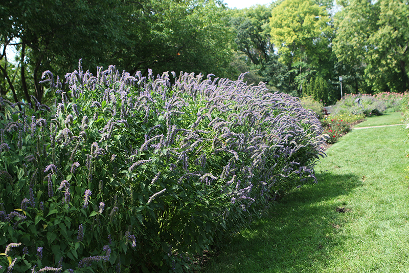 Hardiness Zone: 3 Other Names: Anise Hyssop, Licorice Mint, Hummingbird Mint Description: A lovely upright perennial with beautiful black licorice-scented leaves and lavender-blue blooms from summer to fall; drought tolerant, a wonderful addition to garden beds, containers or used in cut flower arrangements; low maintenance and easy to grow Ornamental Features Blue Fortune Anise Hyssop has masses of beautiful spikes of lightly-scented blue flowers with lavender overtones rising above the foliage from mid summer to mid fall, which are most effective when planted in groupings. The flowers are excellent for cutting. Its attractive fragrant pointy leaves remain dark green in color throughout the season. Landscape Attributes Blue Fortune Anise Hyssop is a dense herbaceous perennial with an upright spreading habit of growth. Its medium texture blends into the garden, but can always be balanced by a couple of finer or coarser plants for an effective composition. This plant will require occasional maintenance and upkeep, and is best cleaned up in early spring before it resumes active growth for the season. It is a good choice for attracting bees, butterflies and hummingbirds to your yard, but is not particularly attractive to deer who tend to leave it alone in favor of tastier treats. Gardeners should be aware of the following characteristic(s) that may warrant special consideration; Blue Fortune Anise Hyssop is recommended for the following landscape applications; Planting & Growing Blue Fortune Anise Hyssop will grow to be about 3 feet tall at maturity extending to 4 feet tall with the flowers, with a spread of 3 feet. It tends to be leggy, with a typical clearance of 1 foot from the ground, and should be underplanted with lower-growing perennials. It grows at a fast rate, and under ideal conditions can be expected to live for approximately 6 years. As an herbaceous perennial, this plant will usually die back to the crown each winter, and will regrow from the base each spring. Be careful not to disturb the crown in late winter when it may not be readily seen! This plant performs well in both full sun and full shade. It is very adaptable to both dry and moist growing conditions, but will not tolerate any standing water. It is considered to be drought-tolerant, and thus makes an ideal choice for a low-water garden or xeriscape application. It is not particular as to soil type, but has a definite preference for alkaline soils. It is somewhat tolerant of urban pollution. This particular variety is an interspecific hybrid. It can be propagated by division; however, as a cultivated variety, be aware that it may be subject to certain restrictions or prohibitions on propagation. Blue Fortune Anise Hyssop is a fine choice for the garden, but it is also a good selection for planting in outdoor pots and containers. With its upright habit of growth, it is best suited for use as a 'thriller' in the 'spiller-thriller-filler' container combination; plant it near the center of the pot, surrounded by smaller plants and those that spill over the edges. It is even sizeable enough that it can be grown alone in a suitable container. Note that when growing plants in outdoor containers and baskets, they may require more frequent waterings than they would in the yard or garden.![]()