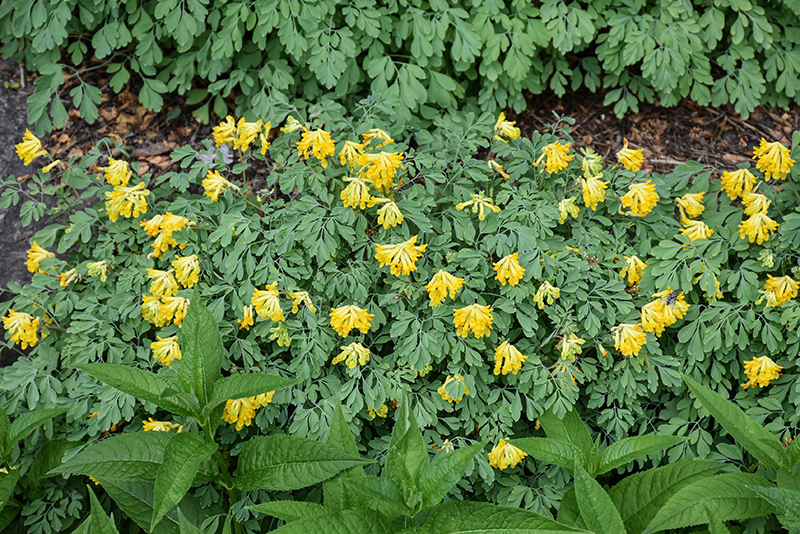 Hardiness Zone: 3 Other Names: Fumitory Description: A beautiful, easy to grow selection that presents mounds of light green foliage with sunshine yellow flowers in mid spring; summertime dormant in hot areas, but will continue to bloom into the fall in cooler areas; great for borders or beds Ornamental Features Golden Corydalis has spikes of yellow trumpet-shaped flowers rising above the foliage from mid spring to early fall, which are interesting on close inspection. Its compound leaves remain light green in color throughout the season. Landscape Attributes Golden Corydalis is an herbaceous perennial with a more or less rounded form. It brings an extremely fine and delicate texture to the garden composition and should be used to full effect. This plant will require occasional maintenance and upkeep, and should be cut back in late fall in preparation for winter. Deer don't particularly care for this plant and will usually leave it alone in favor of tastier treats. Gardeners should be aware of the following characteristic(s) that may warrant special consideration; Golden Corydalis is recommended for the following landscape applications; Planting & Growing Golden Corydalis will grow to be about 12 inches tall at maturity, with a spread of 12 inches. Its foliage tends to remain dense right to the ground, not requiring facer plants in front. It grows at a medium rate, and under ideal conditions can be expected to live for approximately 5 years. As an herbaceous perennial, this plant will usually die back to the crown each winter, and will regrow from the base each spring. Be careful not to disturb the crown in late winter when it may not be readily seen! This plant does best in partial shade to shade. It prefers to grow in average to moist conditions, and shouldn't be allowed to dry out. It is not particular as to soil type or pH. It is quite intolerant of urban pollution, therefore inner city or urban streetside plantings are best avoided, and will benefit from being planted in a relatively sheltered location. Consider applying a thick mulch around the root zone in winter to protect it in exposed locations or colder microclimates. This species is not originally from North America.