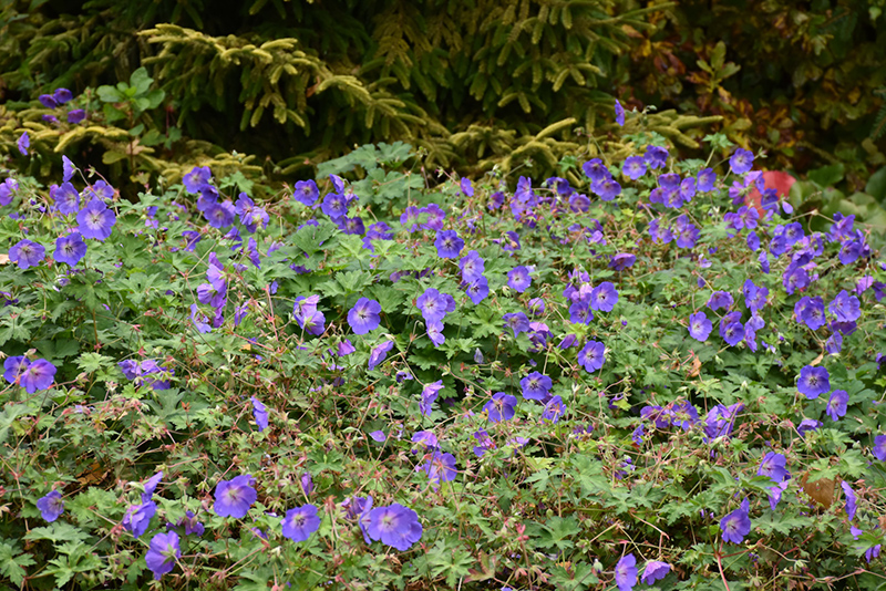 Hardiness Zone: 3 Other Names: Hardy Geranium Description: Vigorous growth with long flowering period, this selection features mounds of deep green foliage topped with gorgeous violet-blue flowers; blooms from late spring to early frost; excellent for borders, containers and hanging baskets Ornamental Features Rozanne Cranesbill has masses of beautiful blue flowers with white eyes at the ends of the stems from late spring to mid summer, which are most effective when planted in groupings. Its deeply cut lobed palmate leaves are forest green in color. As an added bonus, the foliage turns a gorgeous red in the fall. Landscape Attributes Rozanne Cranesbill is an herbaceous perennial with a mounded form. Its relatively fine texture sets it apart from other garden plants with less refined foliage. This is a relatively low maintenance plant, and should only be pruned after flowering to avoid removing any of the current season's flowers. It is a good choice for attracting butterflies to your yard, but is not particularly attractive to deer who tend to leave it alone in favor of tastier treats. It has no significant negative characteristics. Rozanne Cranesbill is recommended for the following landscape applications; Planting & Growing Rozanne Cranesbill will grow to be about 18 inches tall at maturity, with a spread of 24 inches. When grown in masses or used as a bedding plant, individual plants should be spaced approximately 20 inches apart. Its foliage tends to remain dense right to the ground, not requiring facer plants in front. It grows at a medium rate, and under ideal conditions can be expected to live for approximately 10 years. As an herbaceous perennial, this plant will usually die back to the crown each winter, and will regrow from the base each spring. Be careful not to disturb the crown in late winter when it may not be readily seen! This plant does best in full sun to partial shade. It is very adaptable to both dry and moist locations, and should do just fine under typical garden conditions. It is not particular as to soil type or pH. It is somewhat tolerant of urban pollution. This particular variety is an interspecific hybrid. It can be propagated by division; however, as a cultivated variety, be aware that it may be subject to certain restrictions or prohibitions on propagation. Rozanne Cranesbill is a fine choice for the garden, but it is also a good selection for planting in outdoor containers and hanging baskets. It is often used as a 'filler' in the 'spiller-thriller-filler' container combination, providing a mass of flowers against which the thriller plants stand out. Note that when growing plants in outdoor containers and baskets, they may require more frequent waterings than they would in the yard or garden.