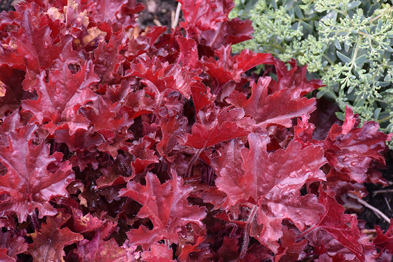 Hardiness Zone: 4 Other Names: Coralbells, Alumroot Group/Class: Dolce Series Brand: Proven Winners Description: Compact mounds of beautiful, bright red, heavily ruffled leaves that mature to burgundy-red in summer; light pink flowers; amazing contrast to other plants; great versatility; keep soil moist in heat of summer Ornamental Features Dolce® Cherry Truffles Coral Bells is primarily valued in the garden for its distinctive form, with the flower stalks towering over the foliage. It features tiny spikes of pink bell-shaped flowers rising above the foliage from early to mid summer. Its attractive crinkled lobed leaves emerge cherry red in spring, turning red in color with hints of burgundy the rest of the year. Landscape Attributes Dolce® Cherry Truffles Coral Bells is a dense herbaceous evergreen perennial with tall flower stalks held atop a low mound of foliage. Its relatively fine texture sets it apart from other garden plants with less refined foliage. This is a relatively low maintenance plant, and should be cut back in late fall in preparation for winter. It is a good choice for attracting hummingbirds to your yard. It has no significant negative characteristics. Dolce® Cherry Truffles Coral Bells is recommended for the following landscape applications; Planting & Growing Dolce® Cherry Truffles Coral Bells will grow to be about 10 inches tall at maturity extending to 20 inches tall with the flowers, with a spread of 28 inches. When grown in masses or used as a bedding plant, individual plants should be spaced approximately 26 inches apart. Its foliage tends to remain low and dense right to the ground. It grows at a medium rate, and under ideal conditions can be expected to live for approximately 10 years. As an evegreen perennial, this plant will typically keep its form and foliage year-round. This plant performs well in both full sun and full shade. However, you may want to keep it away from hot, dry locations that receive direct afternoon sun or which get reflected sunlight, such as against the south side of a white wall. It prefers to grow in average to moist conditions, and shouldn't be allowed to dry out. It is not particular as to soil type or pH. It is somewhat tolerant of urban pollution. Consider covering it with a thick layer of mulch in winter to protect it in exposed locations or colder microclimates. This particular variety is an interspecific hybrid. It can be propagated by division; however, as a cultivated variety, be aware that it may be subject to certain restrictions or prohibitions on propagation. Dolce® Cherry Truffles Coral Bells is a fine choice for the garden, but it is also a good selection for planting in outdoor pots and containers. With its upright habit of growth, it is best suited for use as a 'thriller' in the 'spiller-thriller-filler' container combination; plant it near the center of the pot, surrounded by smaller plants and those that spill over the edges. Note that when growing plants in outdoor containers and baskets, they may require more frequent waterings than they would in the yard or garden.![]()