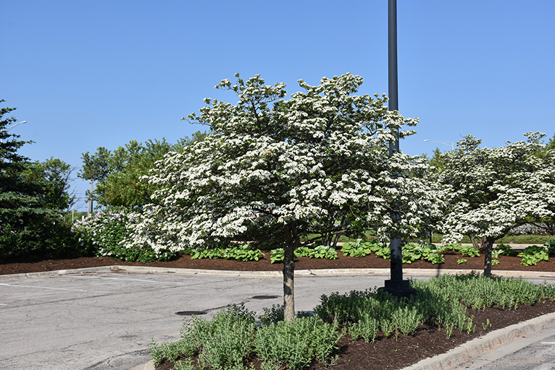 Hardiness Zone: 4 Description: A top notch small landscape accent shrub of great beauty; superb branching habit, a blanket of white flowers in spring, red berries and brilliant color in fall; preferred to the species because it is thornless Ornamental Features Thornless Cockspur Hawthorn is covered in stunning clusters of white flowers held atop the branches in mid spring. The fruits are showy red pomes carried in abundance from early fall to late winter. It has forest green deciduous foliage. The glossy round leaves turn an outstanding tomato-orange in the fall. Landscape Attributes Thornless Cockspur Hawthorn is a deciduous tree with a stunning habit of growth which features almost oriental horizontally-tiered branches. Its relatively fine texture sets it apart from other landscape plants with less refined foliage. This tree will require occasional maintenance and upkeep, and is best pruned in late winter once the threat of extreme cold has passed. It has no significant negative characteristics. Thornless Cockspur Hawthorn is recommended for the following landscape applications; Planting & Growing Thornless Cockspur Hawthorn will grow to be about 25 feet tall at maturity, with a spread of 25 feet. It has a low canopy with a typical clearance of 3 feet from the ground, and is suitable for planting under power lines. It grows at a slow rate, and under ideal conditions can be expected to live for 50 years or more. This tree should only be grown in full sunlight. It is very adaptable to both dry and moist growing conditions, but will not tolerate any standing water. It is not particular as to soil type or pH. It is highly tolerant of urban pollution and will even thrive in inner city environments. This is a selection of a native North American species.![]()