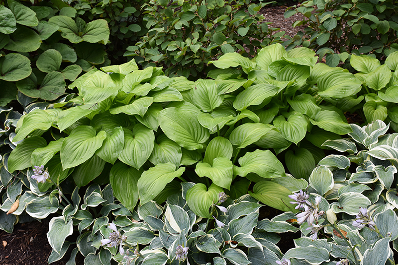 Hardiness Zone: 2 Other Names: Plantain Lily, Funkia Description: A wonderful mid sized variety producing mounds of chartreuse=gold leaves with irregular medium green margins; highly fragrant white flowers appear on tall scapes during the midsummer months; adds color, contrast and texture to beds, borders and containers Ornamental Features Guacamole Hosta features dainty spikes of white bell-shaped flowers rising above the foliage in mid summer. Its attractive large textured heart-shaped leaves remain chartreuse in color with showy emerald green variegation throughout the season. Landscape Attributes Guacamole Hosta is a dense herbaceous perennial with tall flower stalks held atop a low mound of foliage. Its relatively coarse texture can be used to stand it apart from other garden plants with finer foliage. This is a relatively low maintenance plant, and is best cleaned up in early spring before it resumes active growth for the season. Gardeners should be aware of the following characteristic(s) that may warrant special consideration; Guacamole Hosta is recommended for the following landscape applications; Planting & Growing Guacamole Hosta will grow to be about 24 inches tall at maturity extending to 3 feet tall with the flowers, with a spread of 4 feet. When grown in masses or used as a bedding plant, individual plants should be spaced approximately 3 feet apart. Its foliage tends to remain dense right to the ground, not requiring facer plants in front. It grows at a medium rate, and under ideal conditions can be expected to live for approximately 10 years. As an herbaceous perennial, this plant will usually die back to the crown each winter, and will regrow from the base each spring. Be careful not to disturb the crown in late winter when it may not be readily seen! This plant does best in partial shade to shade. It prefers to grow in average to moist conditions, and shouldn't be allowed to dry out. It is not particular as to soil type or pH. It is somewhat tolerant of urban pollution. This particular variety is an interspecific hybrid. It can be propagated by division; however, as a cultivated variety, be aware that it may be subject to certain restrictions or prohibitions on propagation.
