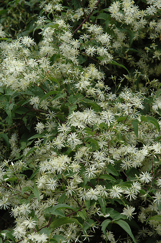 Hardiness Zone: 4 Description: Dainty, star-like creamy white flowers are sweetly scented and completely cover this vigorous vine late in the season, makes a fabulous screen; keep the roots cool for best results; can grow up to 20 feet; attractive silver seed heads Ornamental Features Sweet Autumn Clematis is smothered in stunning lightly-scented creamy white star-shaped flowers with yellow anthers at the ends of the branches from late summer to late fall. It has green deciduous foliage. The compound leaves do not develop any appreciable fall color. Landscape Attributes Sweet Autumn Clematis is a multi-stemmed deciduous woody vine with a twining and trailing habit of growth. Its average texture blends into the landscape, but can be balanced by one or two finer or coarser trees or shrubs for an effective composition. This is a high maintenance woody vine that will require regular care and upkeep, and is best pruned in late winter once the threat of extreme cold has passed. It is a good choice for attracting hummingbirds to your yard. Gardeners should be aware of the following characteristic(s) that may warrant special consideration; Sweet Autumn Clematis is recommended for the following landscape applications; Planting & Growing Sweet Autumn Clematis will grow to be about 20 feet tall at maturity, with a spread of 24 inches. As a climbing vine, it tends to be leggy near the base and should be underplanted with low-growing facer plants. It should be planted near a fence, trellis or other landscape structure where it can be trained to grow upwards on it, or allowed to trail off a retaining wall or slope. It grows at a fast rate, and under ideal conditions can be expected to live for approximately 20 years. This woody vine does best in full sun to partial shade. It does best in average to evenly moist conditions, but will not tolerate standing water. It is not particular as to soil type or pH. It is somewhat tolerant of urban pollution. Consider applying a thick mulch around the root zone over the growing season to conserve soil moisture. This species is not originally from North America. Sweet Autumn Clematis makes a fine choice for the outdoor landscape, but it is also well-suited for use in outdoor pots and containers. Because of its spreading habit of growth, it is ideally suited for use as a 'spiller' in the 'spiller-thriller-filler' container combination; plant it near the edges where it can spill gracefully over the pot. It is even sizeable enough that it can be grown alone in a suitable container. Note that when grown in a container, it may not perform exactly as indicated on the tag - this is to be expected. Also note that when growing plants in outdoor containers and baskets, they may require more frequent waterings than they would in the yard or garden.