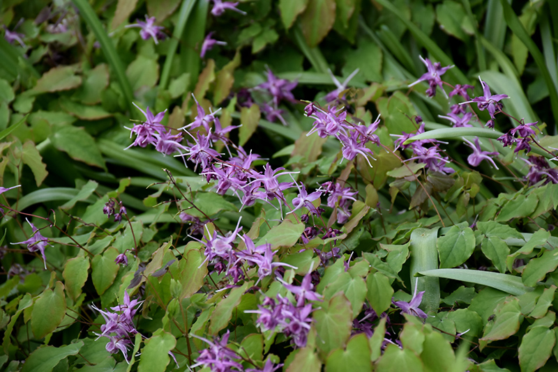 Hardiness Zone: 4 Other Names: Barrenwort, Bishop's Hat, Fairy Wings Description: Delicate shooting star-like lilac flowers, largest of the species; shield-shaped green leaves have reddish mottling in spring and fall; makes a great groundcover that is tolerant of dry shade once established; also grows well in moisture if well-drained Ornamental Features Lilafee Bishop's Hat features delicate nodding lilac purple star-shaped flowers with purple spurs rising above the foliage from mid to late spring. Its attractive heart-shaped leaves emerge red in spring, turning green in color with distinctive antique red edges. As an added bonus, the foliage turns a gorgeous brick red in the fall. Landscape Attributes Lilafee Bishop's Hat is a dense herbaceous evergreen perennial with a ground-hugging habit of growth. Its medium texture blends into the garden, but can always be balanced by a couple of finer or coarser plants for an effective composition. This plant will require occasional maintenance and upkeep, and is best cleaned up in early spring before it resumes active growth for the season. It is a good choice for attracting bees to your yard, but is not particularly attractive to deer who tend to leave it alone in favor of tastier treats. Gardeners should be aware of the following characteristic(s) that may warrant special consideration; Lilafee Bishop's Hat is recommended for the following landscape applications; Planting & Growing Lilafee Bishop's Hat will grow to be about 18 inches tall at maturity, with a spread of 18 inches. When grown in masses or used as a bedding plant, individual plants should be spaced approximately 15 inches apart. Its foliage tends to remain dense right to the ground, not requiring facer plants in front. It grows at a medium rate, and under ideal conditions can be expected to live for approximately 10 years. As an evegreen perennial, this plant will typically keep its form and foliage year-round. This plant does best in partial shade to shade. It is very adaptable to both dry and moist growing conditions, but will not tolerate any standing water. It is considered to be drought-tolerant, and thus makes an ideal choice for a low-water garden or xeriscape application. It is not particular as to soil pH, but grows best in rich soils. It is somewhat tolerant of urban pollution. Consider applying a thick mulch around the root zone in winter to protect it in exposed locations or colder microclimates. This is a selected variety of a species not originally from North America. It can be propagated by division; however, as a cultivated variety, be aware that it may be subject to certain restrictions or prohibitions on propagation. Lilafee Bishop's Hat is a fine choice for the garden, but it is also a good selection for planting in outdoor pots and containers. Because of its spreading habit of growth, it is ideally suited for use as a 'spiller' in the 'spiller-thriller-filler' container combination; plant it near the edges where it can spill gracefully over the pot. Note that when growing plants in outdoor containers and baskets, they may require more frequent waterings than they would in the yard or garden.![]()