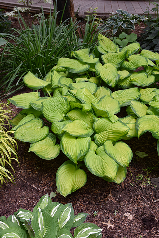 Hardiness Zone: 2 Other Names: Plantain Lily, Funkia Description: Leaves have chartreuse centers with green variegation and wavy margins; provides beautiful texture and contrast to other plants; fragrant white spikes of flowers in mid-summer Ornamental Features Stained Glass Hosta features dainty spikes of lightly-scented white tubular flowers rising above the foliage from mid to late summer. Its attractive small textured oval leaves remain chartreuse in color with showy green variegation throughout the season. Landscape Attributes Stained Glass Hosta is a dense herbaceous perennial with tall flower stalks held atop a low mound of foliage. Its relatively fine texture sets it apart from other garden plants with less refined foliage. This is a relatively low maintenance plant, and is best cleaned up in early spring before it resumes active growth for the season. Gardeners should be aware of the following characteristic(s) that may warrant special consideration; Stained Glass Hosta is recommended for the following landscape applications; Planting & Growing Stained Glass Hosta will grow to be about 10 inches tall at maturity extending to 18 inches tall with the flowers, with a spread of 3 feet. When grown in masses or used as a bedding plant, individual plants should be spaced approximately 30 inches apart. Its foliage tends to remain low and dense right to the ground. It grows at a slow rate, and under ideal conditions can be expected to live for approximately 10 years. As an herbaceous perennial, this plant will usually die back to the crown each winter, and will regrow from the base each spring. Be careful not to disturb the crown in late winter when it may not be readily seen! This plant does best in partial shade to shade. It prefers to grow in average to moist conditions, and shouldn't be allowed to dry out. It is not particular as to soil type or pH. It is somewhat tolerant of urban pollution. This particular variety is an interspecific hybrid. It can be propagated by division; however, as a cultivated variety, be aware that it may be subject to certain restrictions or prohibitions on propagation.
