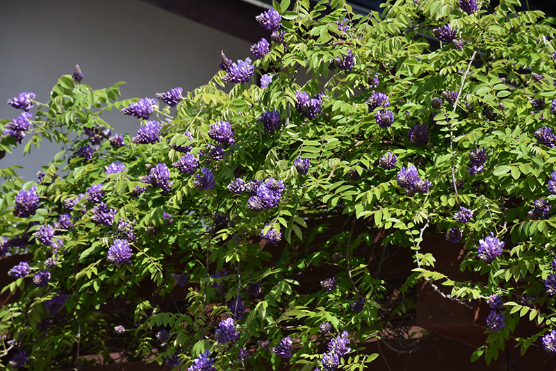 Hardiness Zone: 4 Other Names: Kentucky Wisteria Description: One of the hardiest of all wisterias, this stunning vine is highly tolerant to cold and features stunning chains of lavender flowers blooming three times a year; vine can grow quite woody, needs ample support and full sun Ornamental Features Blue Moon Wisteria is draped in stunning chains of fragrant lavender pea-like flowers with powder blue overtones hanging below the branches from mid to late spring. It has green deciduous foliage which emerges coppery-bronze in spring. The narrow pinnately compound leaves turn yellow in fall. Landscape Attributes Blue Moon Wisteria is a multi-stemmed deciduous woody vine with a twining and trailing habit of growth. Its average texture blends into the landscape, but can be balanced by one or two finer or coarser trees or shrubs for an effective composition. This is a high maintenance woody vine that will require regular care and upkeep, and should only be pruned after flowering to avoid removing any of the current season's flowers. It is a good choice for attracting hummingbirds to your yard, but is not particularly attractive to deer who tend to leave it alone in favor of tastier treats. Gardeners should be aware of the following characteristic(s) that may warrant special consideration; Blue Moon Wisteria is recommended for the following landscape applications; Planting & Growing Blue Moon Wisteria will grow to be about 30 feet tall at maturity, with a spread of 24 inches. As a climbing vine, it tends to be leggy near the base and should be underplanted with low-growing facer plants. It should be planted near a fence, trellis or other landscape structure where it can be trained to grow upwards on it, or allowed to trail off a retaining wall or slope. It grows at a fast rate, and under ideal conditions can be expected to live for approximately 30 years. This woody vine should only be grown in full sunlight. It does best in average to evenly moist conditions, but will not tolerate standing water. It is not particular as to soil type or pH. It is highly tolerant of urban pollution and will even thrive in inner city environments. Consider applying a thick mulch around the root zone in winter to protect it in exposed locations or colder microclimates. This is a selected variety of a species not originally from North America, and parts of it are known to be toxic to humans and animals, so care should be exercised in planting it around children and pets.![]()