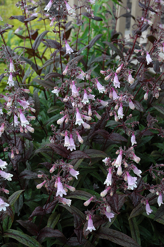 Hardiness Zone: 3 Other Names: Beardtongue Ornamental Features Dark Towers Beard Tongue has masses of beautiful spikes of white tubular flowers with a pink reverse rising above the foliage from early to mid summer, which emerge from distinctive violet flower buds, and which are most effective when planted in groupings. The flowers are excellent for cutting. Its attractive glossy narrow leaves emerge burgundy in spring, turning dark green in color with distinctive deep purple edges. The foliage often turns brown in fall. The deep purple stems are very colorful and add to the overall interest of the plant. Landscape Attributes Dark Towers Beard Tongue is an herbaceous perennial with an upright spreading habit of growth. Its medium texture blends into the garden, but can always be balanced by a couple of finer or coarser plants for an effective composition. This is a relatively low maintenance plant, and is best cleaned up in early spring before it resumes active growth for the season. It is a good choice for attracting butterflies and hummingbirds to your yard. It has no significant negative characteristics. Dark Towers Beard Tongue is recommended for the following landscape applications; Planting & Growing Dark Towers Beard Tongue will grow to be about 24 inches tall at maturity extending to 3 feet tall with the flowers, with a spread of 24 inches. When grown in masses or used as a bedding plant, individual plants should be spaced approximately 18 inches apart. It grows at a fast rate, and under ideal conditions can be expected to live for approximately 10 years. As an herbaceous perennial, this plant will usually die back to the crown each winter, and will regrow from the base each spring. Be careful not to disturb the crown in late winter when it may not be readily seen! This plant does best in full sun to partial shade. It prefers dry to average moisture levels with very well-drained soil, and will often die in standing water. It is considered to be drought-tolerant, and thus makes an ideal choice for a low-water garden or xeriscape application. It is not particular as to soil type or pH. It is somewhat tolerant of urban pollution. This particular variety is an interspecific hybrid. It can be propagated by cuttings; however, as a cultivated variety, be aware that it may be subject to certain restrictions or prohibitions on propagation. Dark Towers Beard Tongue is a fine choice for the garden, but it is also a good selection for planting in outdoor pots and containers. With its upright habit of growth, it is best suited for use as a 'thriller' in the 'spiller-thriller-filler' container combination; plant it near the center of the pot, surrounded by smaller plants and those that spill over the edges. It is even sizeable enough that it can be grown alone in a suitable container. Note that when growing plants in outdoor containers and baskets, they may require more frequent waterings than they would in the yard or garden.![]()