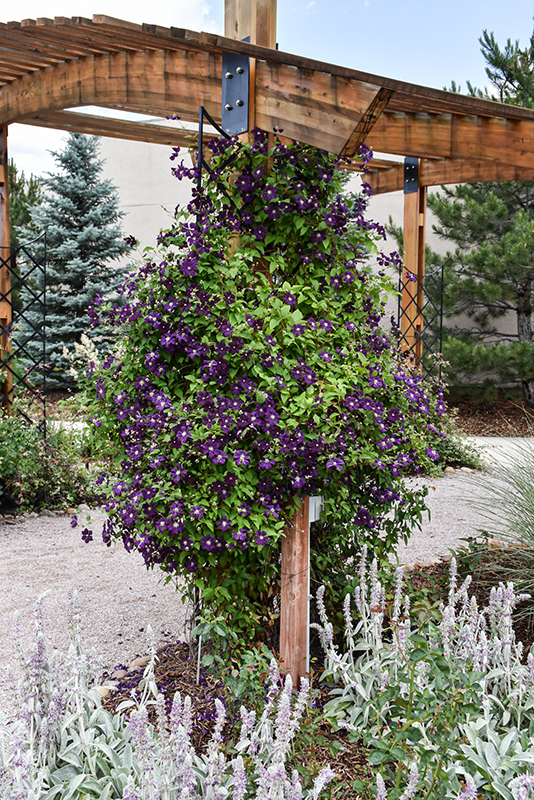 Hardiness Zone: 3 Description: A notable improvement over the enormously popular Jackman clematis which is more vigorous and produces even larger, richer deep purple-blue flowers across the entire summer and into fall; a tough and hardy plant for every gardener Ornamental Features Jackmanii Superba Clematis features showy royal blue star-shaped flowers with white anthers at the ends of the branches from mid summer to early fall. It has green deciduous foliage. The compound leaves do not develop any appreciable fall color. Landscape Attributes Jackmanii Superba Clematis is a multi-stemmed deciduous woody vine with a twining and trailing habit of growth. Its average texture blends into the landscape, but can be balanced by one or two finer or coarser trees or shrubs for an effective composition. This is a relatively low maintenance woody vine. It is a Type 3 clematis; each spring it should be pruned back to within a few inches of the ground, as it flowers on new wood of the season. It is a good choice for attracting hummingbirds to your yard. It has no significant negative characteristics. Jackmanii Superba Clematis is recommended for the following landscape applications; Planting & Growing Jackmanii Superba Clematis will grow to be about 10 feet tall at maturity, with a spread of 24 inches. As a climbing vine, it tends to be leggy near the base and should be underplanted with low-growing facer plants. It should be planted near a fence, trellis or other landscape structure where it can be trained to grow upwards on it, or allowed to trail off a retaining wall or slope. It grows at a medium rate, and under ideal conditions can be expected to live for approximately 20 years. This woody vine should only be grown in full sunlight. It does best in average to evenly moist conditions, but will not tolerate standing water. It is not particular as to soil type or pH. It is highly tolerant of urban pollution and will even thrive in inner city environments. Consider applying a thick mulch around the root zone in both summer and winter to conserve soil moisture and protect it in exposed locations or colder microclimates. This particular variety is an interspecific hybrid. Jackmanii Superba Clematis makes a fine choice for the outdoor landscape, but it is also well-suited for use in outdoor pots and containers. Because of its spreading habit of growth, it is ideally suited for use as a 'spiller' in the 'spiller-thriller-filler' container combination; plant it near the edges where it can spill gracefully over the pot. It is even sizeable enough that it can be grown alone in a suitable container. Note that when grown in a container, it may not perform exactly as indicated on the tag - this is to be expected. Also note that when growing plants in outdoor containers and baskets, they may require more frequent waterings than they would in the yard or garden.![]()