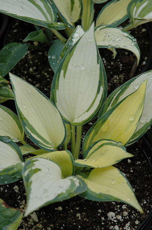 Hardiness Zone: 2 Other Names: Plantain Lily, Funkia Description: Very cool leaves with chartreuse centres and when you look up-close you'll notice the blue-green margin with streaks of green Ornamental Features Remember Me Hosta features dainty spikes of lavender tubular flowers rising above the foliage in mid summer. Its attractive small textured pointy leaves remain creamy white in color with showy bluish-green variegation and tinges of green throughout the season. Landscape Attributes Remember Me Hosta is a dense herbaceous perennial with tall flower stalks held atop a low mound of foliage. Its relatively fine texture sets it apart from other garden plants with less refined foliage. This is a relatively low maintenance plant, and is best cleaned up in early spring before it resumes active growth for the season. Gardeners should be aware of the following characteristic(s) that may warrant special consideration; Remember Me Hosta is recommended for the following landscape applications; Planting & Growing Remember Me Hosta will grow to be only 6 inches tall at maturity extending to 10 inches tall with the flowers, with a spread of 24 inches. When grown in masses or used as a bedding plant, individual plants should be spaced approximately 20 inches apart. Its foliage tends to remain low and dense right to the ground. It grows at a medium rate, and under ideal conditions can be expected to live for approximately 10 years. As an herbaceous perennial, this plant will usually die back to the crown each winter, and will regrow from the base each spring. Be careful not to disturb the crown in late winter when it may not be readily seen! This plant does best in partial shade to shade. It prefers to grow in average to moist conditions, and shouldn't be allowed to dry out. It is not particular as to soil type or pH. It is somewhat tolerant of urban pollution. This particular variety is an interspecific hybrid. It can be propagated by division; however, as a cultivated variety, be aware that it may be subject to certain restrictions or prohibitions on propagation.
