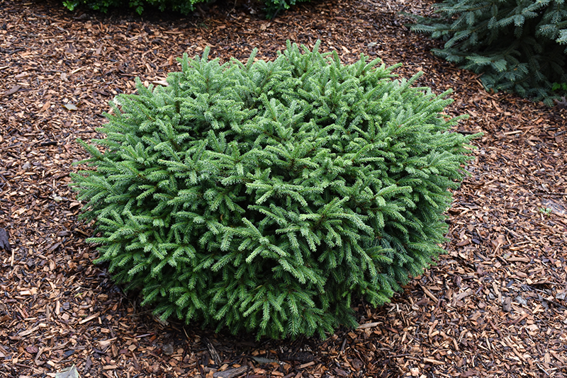 Hardiness Zone: 3 Other Names: Norwegian Spruce Description: Fresh green needles and a compact habit make this slow growing dwarf evergreen a great choice for smaller landscapes and rock gardens; features a wide irregular shape and flat top and is a superior choice for its vigor and hardiness Ornamental Features Pumila Norway Spruce is a dwarf conifer which is primarily valued in the landscape or garden for its ornamental globe-shaped form. It has dark green evergreen foliage which emerges light green in spring. The needles remain dark green throughout the winter. Landscape Attributes Pumila Norway Spruce is a dense multi-stemmed evergreen shrub with a more or less rounded form. Its relatively fine texture sets it apart from other landscape plants with less refined foliage. This is a relatively low maintenance shrub. When pruning is necessary, it is recommended to only trim back the new growth of the current season, other than to remove any dieback. Deer don't particularly care for this plant and will usually leave it alone in favor of tastier treats. It has no significant negative characteristics. Pumila Norway Spruce is recommended for the following landscape applications; Planting & Growing Pumila Norway Spruce will grow to be about 4 feet tall at maturity, with a spread of 5 feet. It tends to fill out right to the ground and therefore doesn't necessarily require facer plants in front. It grows at a slow rate, and under ideal conditions can be expected to live for 50 years or more. This shrub should only be grown in full sunlight. It does best in average to evenly moist conditions, but will not tolerate standing water. It is not particular as to soil type or pH, and is able to handle environmental salt. It is highly tolerant of urban pollution and will even thrive in inner city environments. This is a selected variety of a species not originally from North America.