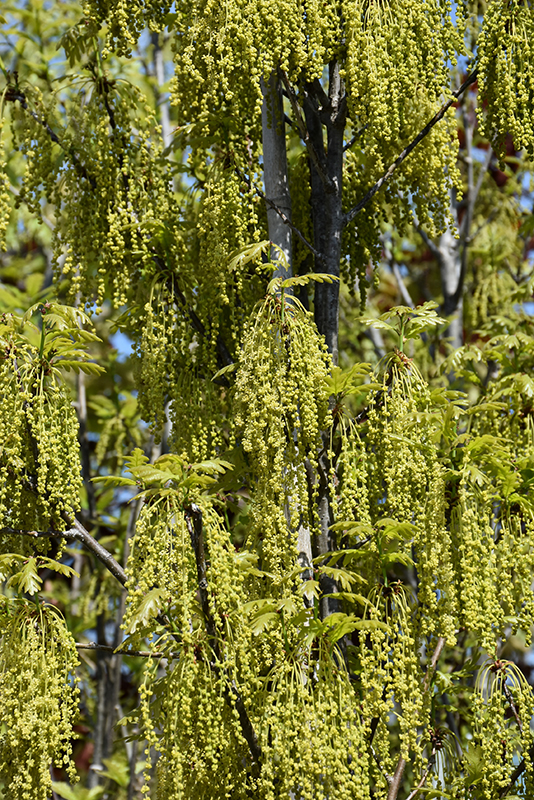 Hardiness Zone: 4 Other Names: Quercus robur x alba Brand: J. Frank Schmidt & Son Co. Description: An extremely beautiful tall tree with a narrowly columnar habit of growth and deep red fall color, ideal for formal screening in the home landscape, a far better choice than Lombardy Poplar; extremely tough and adaptable, faster growing than other oaks Ornamental Features Crimson Spire™ Oak is primarily valued in the landscape for its rigidly columnar form. It has dark green deciduous foliage. The lobed leaves turn an outstanding brick red in the fall. However, the fruit can be messy in the landscape and may require occasional clean-up. Landscape Attributes Crimson Spire™ Oak is a dense deciduous tree with a strong central leader and a narrowly upright and columnar growth habit. Its average texture blends into the landscape, but can be balanced by one or two finer or coarser trees or shrubs for an effective composition. This tree will require occasional maintenance and upkeep, and usually looks its best without pruning, although it will tolerate pruning. It is a good choice for attracting squirrels to your yard. Gardeners should be aware of the following characteristic(s) that may warrant special consideration; Crimson Spire™ Oak is recommended for the following landscape applications; Planting & Growing Crimson Spire™ Oak will grow to be about 50 feet tall at maturity, with a spread of 15 feet. It has a low canopy with a typical clearance of 3 feet from the ground, and should not be planted underneath power lines. It grows at a slow rate, and under ideal conditions can be expected to live to a ripe old age of 100 years or more; think of this as a heritage tree for future generations! This tree should only be grown in full sunlight. It is very adaptable to both dry and moist locations, and should do just fine under average home landscape conditions. It is not particular as to soil type or pH. It is highly tolerant of urban pollution and will even thrive in inner city environments. This particular variety is an interspecific hybrid.